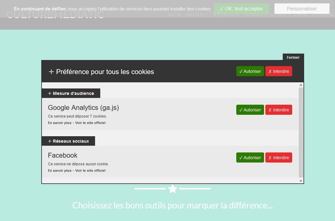 Exemple de mise en place d’un système d’acceptation d’utilisation de cookies :
