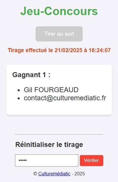 - Page de tirage au sort parmi les réponses